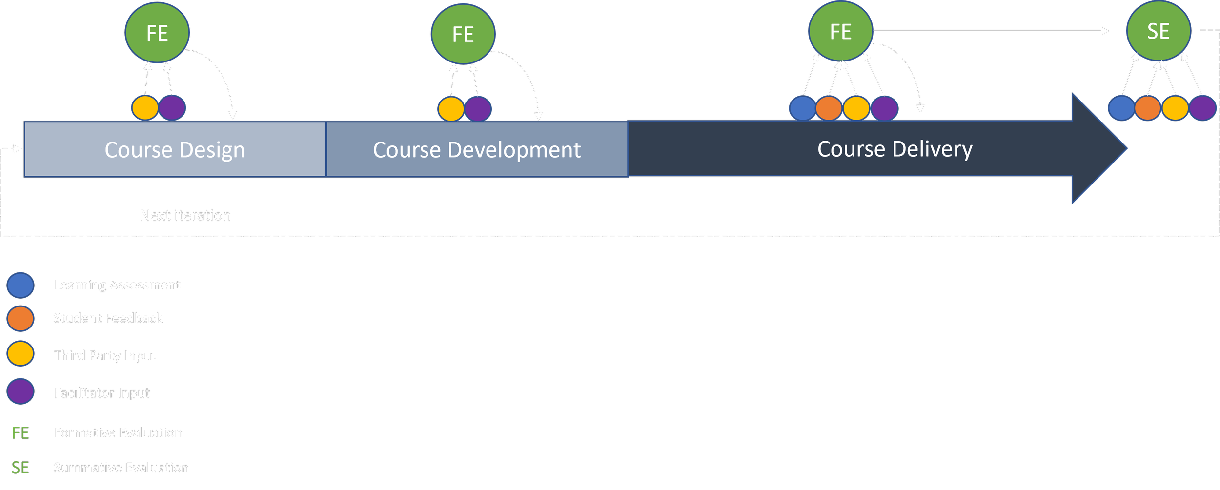 Summative Evaluation is a process in which the educator evaluates the learning event after it has been completed. The evaluation data and analysis come from multiple sources: learning assessments, student feedback, facilitator input, and third-party input.